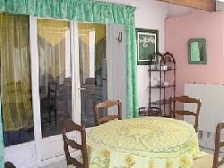 Entrée dans la maison par une véranda (salle à manger), très lumineuse avec buffet et placard à chaussures penderie, table pour 4 à 6 personnes assises.