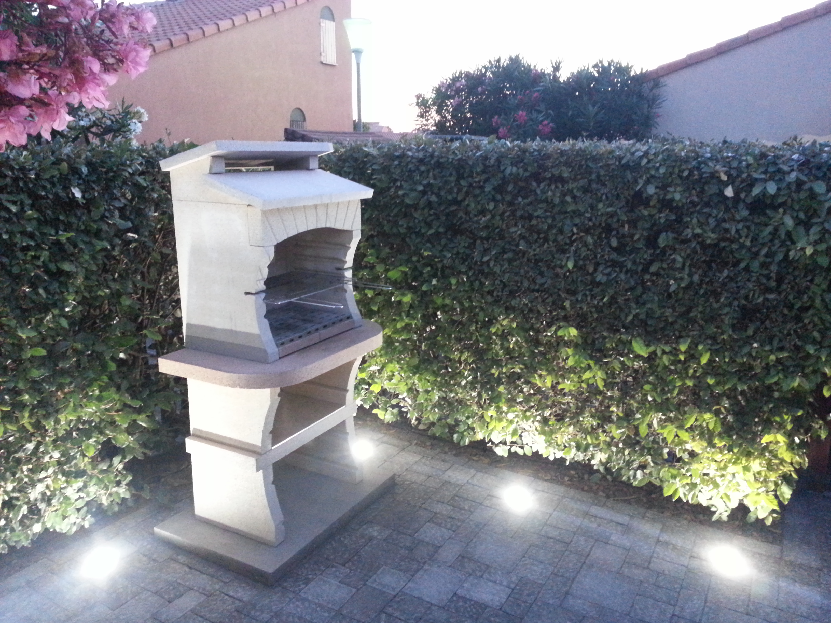 Une magnifique terrasse de 20m2 avec un barbecue en dur et fontaine décorative ....