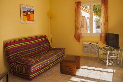 Ici, les Ocres de Provence se marient harmonieusement avec les bleus de Camargue, et l’on bénéficie de tout le confort nécessaire à la réussite de ses vacances avec un coin cuisine, salon, 2 chambres, une salle d’eau et surtout : une petite terrasse privative et son propre barbecue !