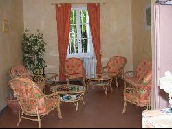 Location possible en gestion libre, table d'hôtes et panier-repas sur commande, salle de séminaire avec sonorisation et salle de jeux indépendantes, piscine, v.t.t. disponibles, parking intérieur, salon.
