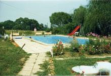 L’habitation des propriétaires et de la piscine sur une exploitation agricole.