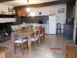 1 grande pièce à vivre avec cuisine toute équipée et une grande cheminée à foyer ouvert pour vos repas ou soirées au coin du feu,