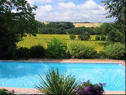 C'est une maison indépendante de 95 m2, avec une cour et un terrain arboré de 1500 m2 privatifs, et une piscine avec une vue magnifique dont l'accès vous est réservé.