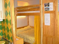 - Coin nuit avec 2 lits superposés spacieux avec séparation par une porte coulissante de la pièce à vivre.