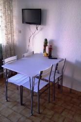 Studio de 25m² avec une cuisine intégrée (2 plaques électrique, four micro-onde, réfrigérateur) ,1 Clic Clac lit 2 places, 1 banquette lit de 2 personnes, 1 salle d'eau avec douche et w-c, cuisine intégrée avec 2 plaque électriques et un réfrigérateur de 86L, 1 lave-vaisselle 6 couverts, 1 lave-linge de 5 Kg, 1 téléviseur mural, 1 table et 4 chaises, 1 grand placard à double porte coulissante, terrasse fermée