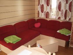 Il est tout confort : 2 chambres + banquette convertible 2 places dans le salon (oreillers et couettes fournis pour 6 pers max, pas les draps qui sont en options), salle de bain et WC séparés.