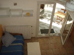 rez de chaussée : véranda, salon avec 2 lits simples (lits tiroir- banquette), coin cuisine équipé, salle d'eau avec baignoire.