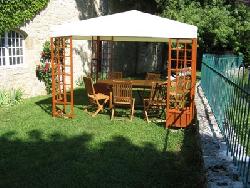 Une salle de bain par chambre, canapé en cuir, poêle à bois, jardin avec pergola.
