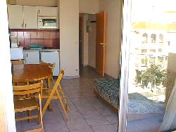 Il s'agit d'un petit appartement moderne de type T2 composé d'un séjour avec banquette lit en 160X190 (canapé convertible BZ), table avec 4 chaises, table d’appoint avec 2 tabourets pliants assortis, kitchenette équipée avec micro-ondes, mini-four, réfrigérateur table-top, couverts et ustensiles de cuisine pour 4 personnes), prise télévision, d'une chambre avec un grand lit (140 X 190), d'une salle de bains (avec baignoire équipée d'une robinetterie avec douche), d'un WC indépendant et d'un grand placard avec penderie.