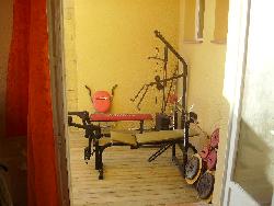 terrasse couverte avec appareils de musculation,jardin avec table-banc 12 personnes,transats,parasols,barbecue.