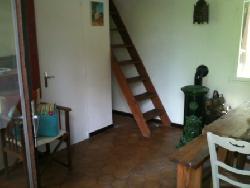 petit cottage en plein nature a 1100m d altitude dans un domaine prive avec piscine offrant pour 4 personnes un sejour avec poele a bois cuisine ouverte une salle d eau avec wc coin nuit avec lits superposes mezanine avec lit de deux personnes, pas d electricite sauf panneau solaire pour eclairage
