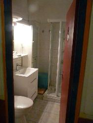 Dans la salle d’eau : une douche neuve , un lavabo neuf , un WC neuf et le chauffe eau neuf de marque BOHDER haut de gamme, lavabo neuf ;.