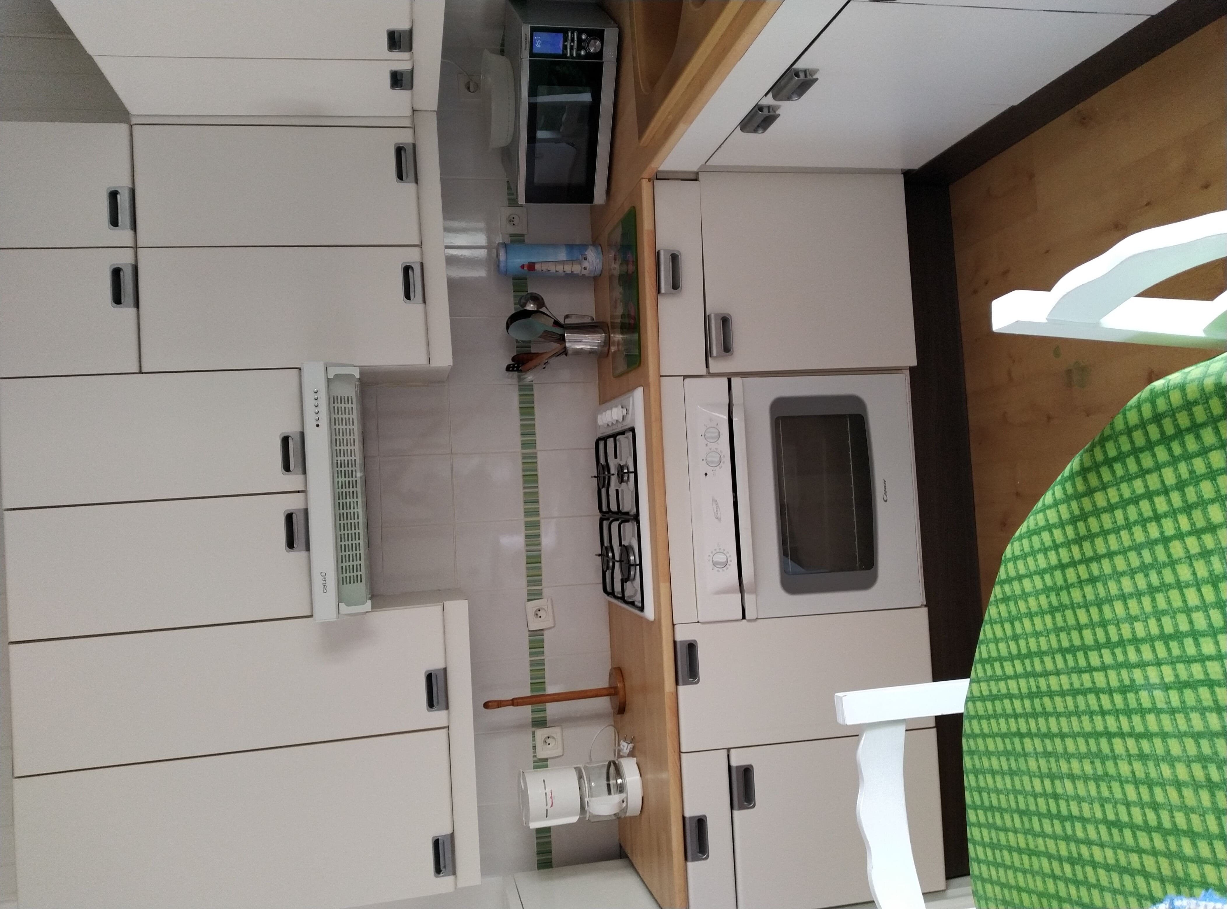 1 cuisine équipée ( nombreux rangements, table, vaisselle complète, four micro-ondes, plaques et four au gaz, frigo, cafetière …),1 chambre avec lit de 160 cm avec dressing, 1 SdB avec douche et LL, 1 salon séjour ( canapé convertible permettant 2 couchages, table de salon, buffet avec vaisselle, télé), 1 terrasse.