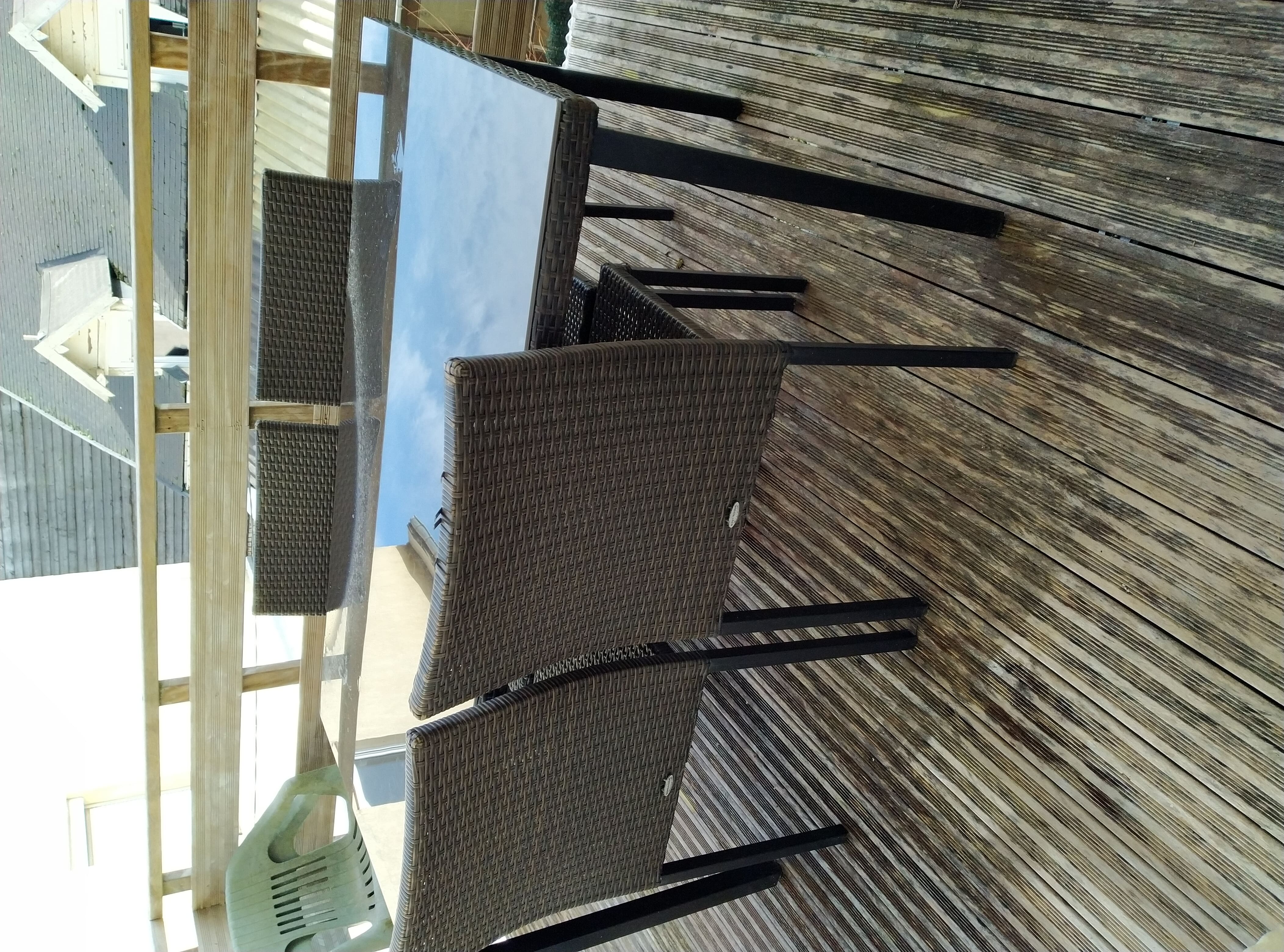 Loue à partir du 6 Mai, à 300m de la plage, au cœur des commerces, appartement traversant meublé de 50 m2 avec terrasse équipée ( table et chaises), comprenant :
