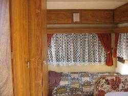 lit permanent de 120 + éventuellement 1 enfant ( le coin dinette se transforme en petit lit de 80 X 160),cabinet de toilettes,