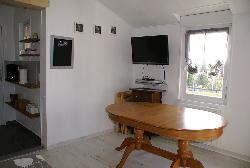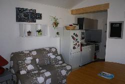 L’appartement est meublé et équipé à neuf. Il comprend une chambre avec un lit 2 personnes + 1 armoire 4 portes (penderie + étagères), un salon avec une table (avec rallonge)+ 4 chaises et une banquette BZ pouvant coucher 2 personnes et un téléviseur écran plat , un coin cuisine (plaque gaz 4 feux, réfrigérateur et congélateur, four multi-fonction) avec un débarras, une salle d’eau close comprenant une douche, un WC et une double vasque avec meuble de rangement.