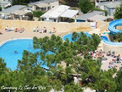 VASTE PARC AQUATIQUE ENTIEREMENT CHAUFFE avec 5 bassins dont 2 couverts (piscines, toboggans, pataugeoire, jacuzzi, solarium avec transats...), TERRAIN MULTI-SPORTS, espace enfants, commerces, bar, animations, restauration rapide, pizzeria, locations vélos, vtt, barbecues, films...