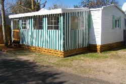 Loue mobil home tout équipé et tout confort pour 6 personnes sur camping 4**** « Le Bois Tordu » avec terrasse couverte, fermée et ouvrable de 15 m².