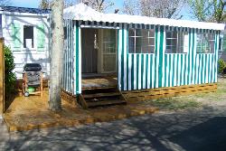 Loue mobil home tout équipé et tout confort pour 6 personnes sur camping 4**** « Le Bois Tordu » avec terrasse couverte, fermée et ouvrable de 15 m².