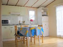 2 chambres ; 1 grande chambre : 2 lits jumelés, télévision, 1 petite chambre : 2 lits 1 personne,, 1 salle d 'eau, douche, WC, cuisine, salon-séjour, 1 canapé lit, télévision, gazinière 3 feux-gaz, frigo partie congélateur, combiné four micro-ondes (lave-linge et sèche-linge présents dans le parc résidentiel), grande terrasse, salon de jardin, accès internet, chauffage électrique, non-fumeur.