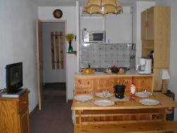 Coin cuisine séparé (frigo, lave-vaisselle, four + micro-ondes, services raclette, fondue..) coin repas (grande table)