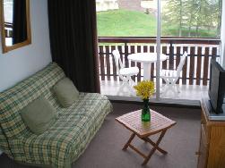 SEJOUR baie vitrée sur balcon : VUE MONTAGNE (canapé lit 140) TV écran plat LCD, lecteur DVD Divix. Coin cuisine séparé (frigo, lave-vaisselle, four + micro-ondes, services raclette, fondue..) CHAMBRE avec fenêtre, armoire, commode.