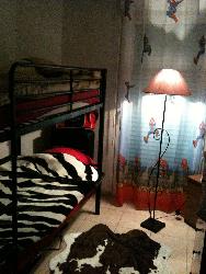-Chambre : lits superposés avec matelas neuf, télé avec DVD, draps et couvertures,placards,meuble de rangements, grand, miroir.