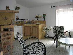Au RDC une grande entrée en pierre avec escalier indépendant, à l'étage avec vue sur colline et village : une entrée, une chambre avec 1 lit de 140, une chambre avec 2 lits de 90, un salon avec coin cuisine équipée, une salle de bain avec douche et wc. Pièces lumineuses triple exposition S E N.