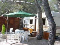 Le Castellet,belle caravane de 8m60, 2 chambres, 1 salon, 1 cuisine équipée,1 salle de bain avec baingnoire, WC, terrasse, petite vue mer. Très bel emplacement. Située au milieu des pins et des écureuils dans résidence de vacances.