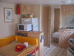 mobilhome 4 places avec 1 chambre a un lit double et une chambre avec 2 lits cuisine salle de bain et endroit calme