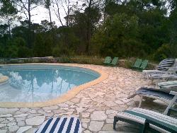 loue petit mas en pierre 25 m2 ombragé, tres calme,cigales!!avec piscine traditionelle, indépendant sans vis a vis sur propriété de 2ha.(le propritaire est situé 50 m a l opposé)salon de jardin .situation geographique : St Maximin la Ste Baume (40 km des plages) proprieté a 2km du village