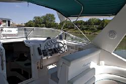 A louer à la journée ou à la semaine, avec ou sans skipper, très beau cabin cruiser Chris Craft de 11 mètres amarré à Port Cogolin dans la baie de Saint Tropez.