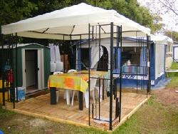 Carvane à louer au camping la Roquette à Roquebrune sur Argens. Située à 15 km de Frejus et Saint-Raphael, 45 km de Cannes, 70 km de Nice, 100 km de Menton et de l'Italie. 30 km des gorges du Verdon, 50 km du Lac de Sainte-Croix, 18 km de Sainte-Maxime, 22 km de Port-Grimaud et Cogolin, 25 km de Saint-Tropez. Piscine et sanitaire sont gratuits dans le camping. Possibilité de faire des Barbecues au endroits prévus dans le camping. Le prix de la location par semaine comprend l'electricité, l'emplacement, la caravane, le stationnement d'une auto, les sanitaires, la piscine. Possibilité de monter une tente sur le terrain (+-120 m2).