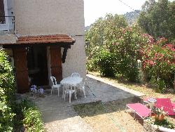 Bord de mer entre Cap Bénat et Cap Nègre loue appartements meublés dans villa de "caractère", située à flancs de collines, cadre exceptionnel, vue panoramique plein sud sur la baie et les Iles d'Or, seulement à 300 m de la plage de sable fin "La Charmeuse", vue montagnes "Les Maures", à 4 kms du centre ville du LAVANDOU.