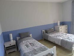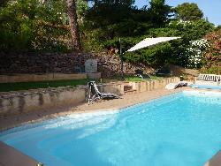 Location 3 pièces en rez-de-jardin de villa provençale. Vue superbe sur la mer et la presqu'île de Giens. Entrée indépendante. Couchage 5-7 personnes. Séjour avec clic-clac et coin cuisine. 2 chambres. Salle de bains. WC séparés. Terrasse. Piscine.