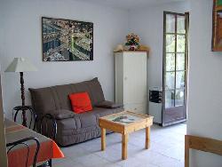 Maison individuelle située à 800m de la mer dans résidence privée et calme.T2 avec terrasse(15m2) et un morceau de jardin(100m2). Parking privé devant la maison. Vue sur mer.Couchage:4pers. 1 grand lit + 1 BZ.Grand confort Tout Confort+clim.à 10 min des centres commerciaux.( Leclerc,Geant) BS 350 HS 550 E/semaine WE:170e(2nuits)