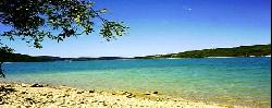 Plages amménagées à 500m des gites sur le lac de Sainte Croix du verdon. baignades dans une eau à 25° en saison, calme, verdure au bord de l'eau turquoise. Gites 2/3 personnes.