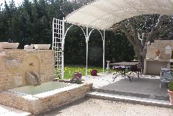 ( 1 en bas avec 1 lit en 160 , l'autre à l'étage avec 2 lits en 90 ) . Un petit salon avec canapé , tv ,frigo , micro-onde ainsi qu'une grande salle de bain avec douche à l'italienne et toilettes séparés vous seront proposés .vous prendrez votre petit déjeuner sous une agréable pergola , près d'une fontaine . Un grand terrain entièrement clôturé sécurisera votre voiture .