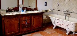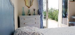 CHAMBRE LEO LELEE.Chambre d'hôtes très spacieuse, avec sa salle de bains et ses toilettes privatives, décor Moustier, donnant sur une grande terrasse au Sud.