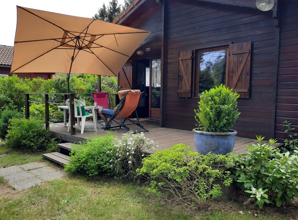 Nous louons un chalet 43m2 avec une grande terrasse, barbecue, salon de jardin, parasol,etc...sur un terrain privatif.