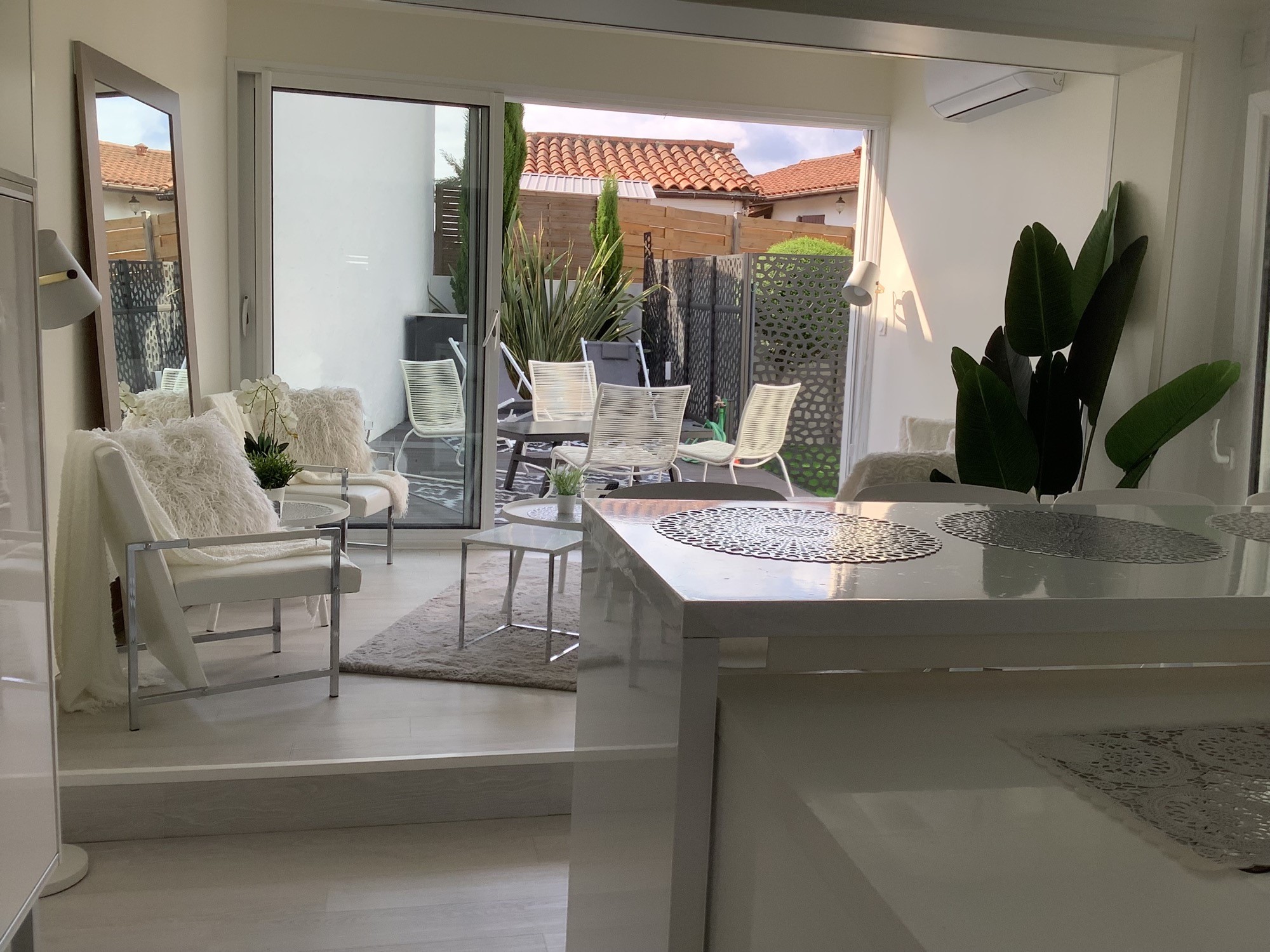Vous accèderez à LITTLE WHITE HOUSE par un portail électrique et pourrez prendre vos petits déjeuners selon vos gouts( thé ou café car a disposition machine à café ,bouilloire, grille pain ,presse agrume),déjeuners(four lave vaisselle, micro onde) et diner en terrasse grâce à ses équipements extérieurs(store banne électrique, table chaise, fauteuils de jardin, transats)