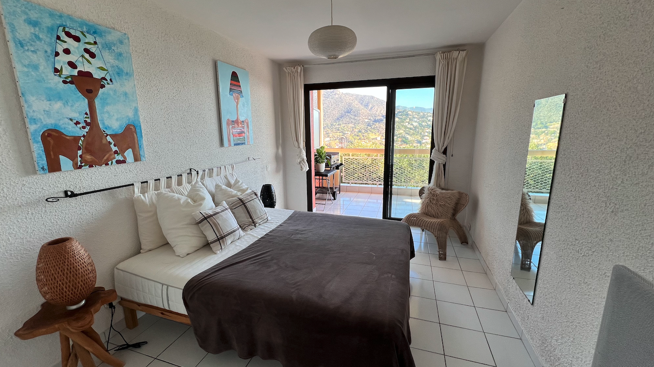 Vue mer exceptionnelle pour ce T2 en rez de chaussée 700m de la plage et du centre ville , superficie de 42m2.