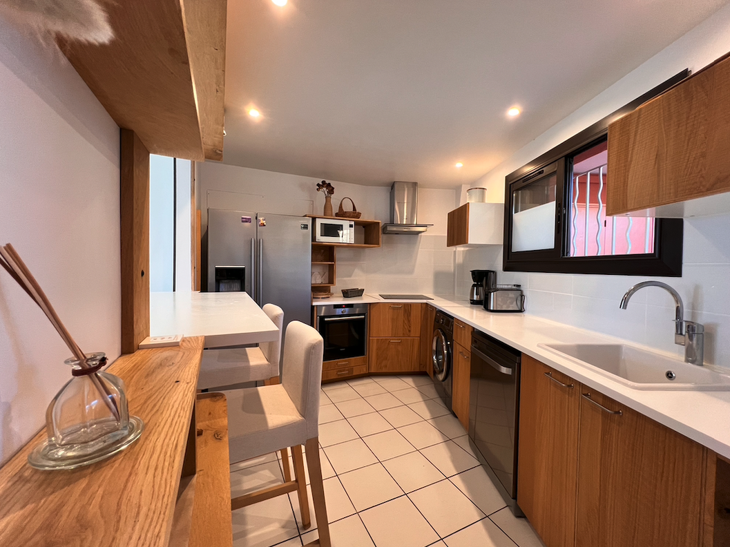 - Cuisine équipé (four ,micron ondes , lave vaisselle, machine à laver , frigo-congélateur). - salon avec télévision et canapé cliclac.
