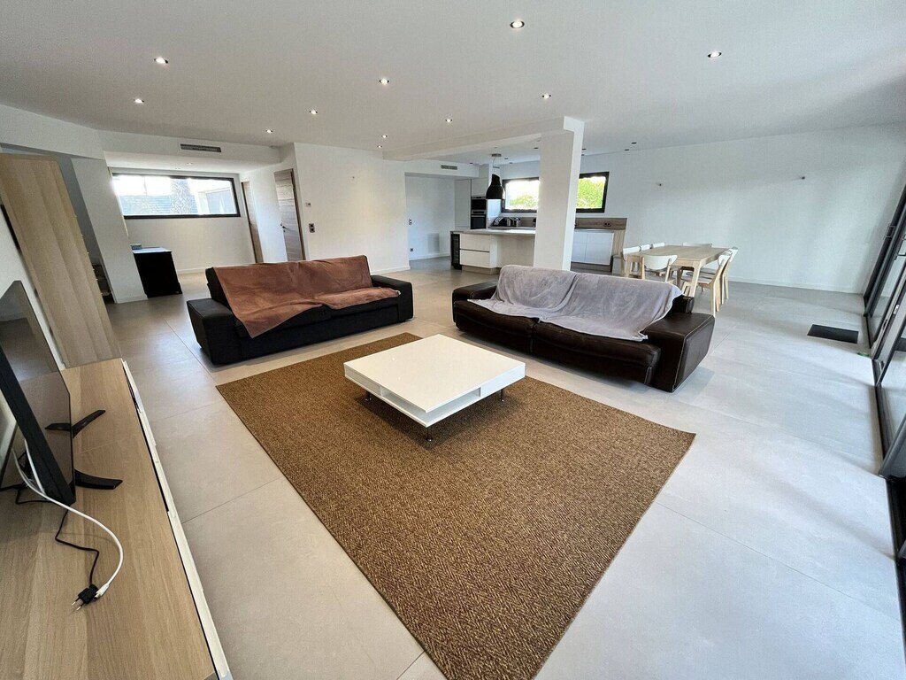 La location est composée comme suit, vous entrez et accédez dans la belle pièce à vivre composée de la cuisine ouverte avec un espace salle à manger et le salon.