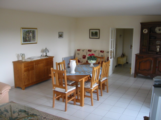 1er étage: séjour, cuisine équipée, 1 s.de douche/wc, 1 s.de b., 1 wc/buhanderie. 1 ch.avec 1 lit de 2 pers., 1 ch. avec 2 lits d'1 p. (+ 1 clic-clac dans le séjour). Au rez-de-chaussée: 1 studio avec 1 lit de 2 p. et 2 lits d'1 pers., kitchenette, s.de b./wc. Wifi, lave-vaiselle, lave-linge, sèche-linge, tv, terrasse, barbecue, garage.
